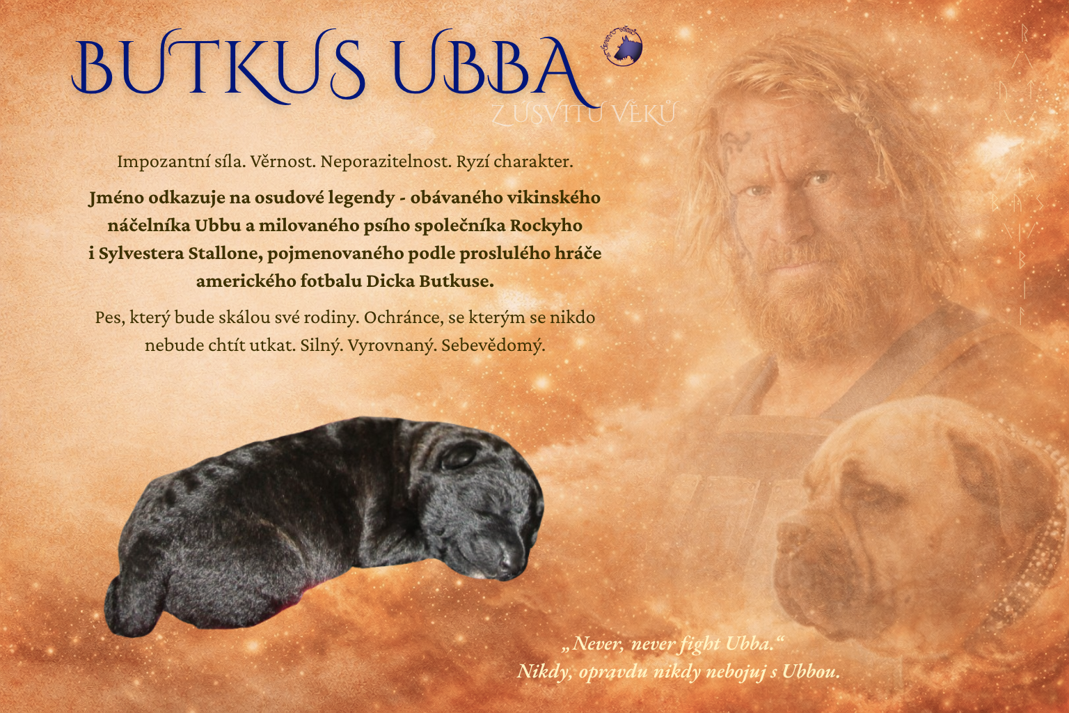 - Má jediného potomka, psa - samce. Jeho případné dcery tedy budou velmi významné pro další chov.
